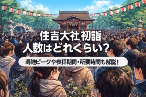 - 元旦~三が日(1月1~3日)の午前10時~15時が混雑ピーク。大晦日深夜0時直後も最高潮。