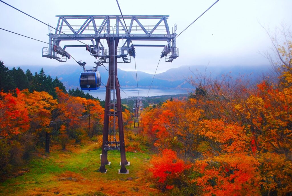 早雲山〜大涌谷〜桃源台を結ぶ空中散歩で、山々の紅葉パノラマが楽しめます。