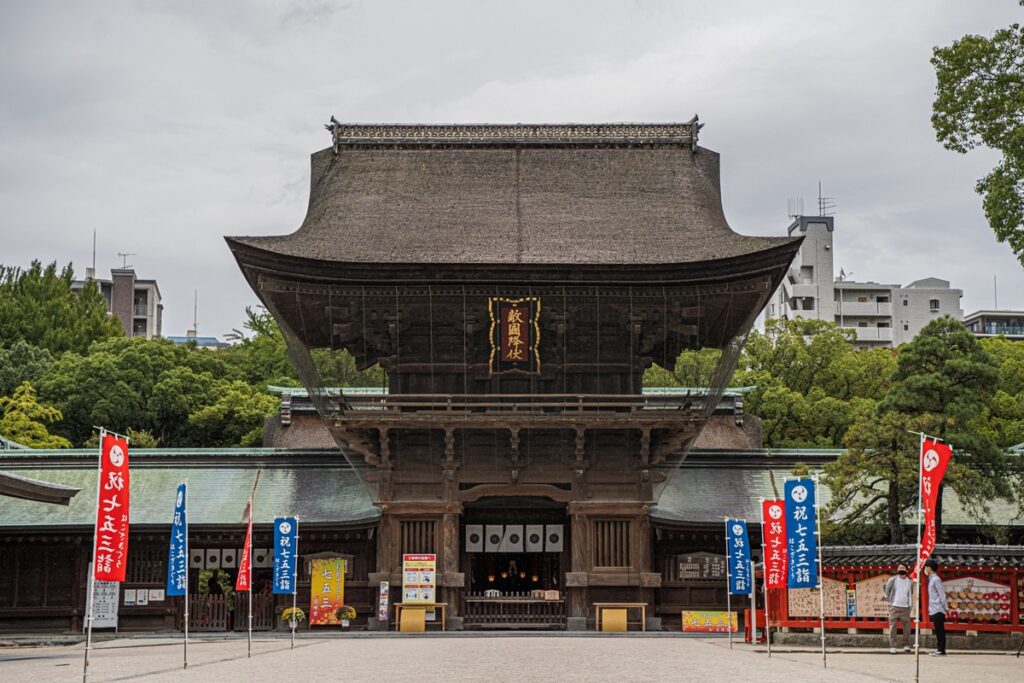 厄除けや勝運のご利益で有名で、「敵国降伏」の文字が掲げられた楼門は、その力強さと歴史の深さを感じさせる見どころの一つです。