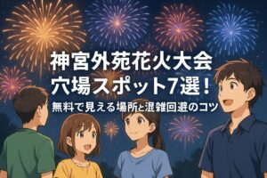 神宮外苑花火大会では、華やかな花火はもちろん、屋台グルメやご当地の味、周辺観光まで一日中楽しめる魅力がぎっしり詰まっています。