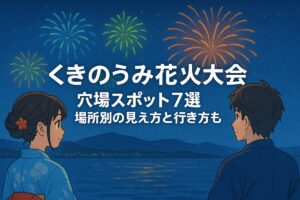 秋の夜を華やかに彩る「くきのうみ花火大会」、アクセスのしやすさと多彩なプログラムで、地元・観光客の両方に毎年大人気のイベントとなっています。早めの到着や交通規制への注意など、事前準備をしっかりして楽しみましょう。