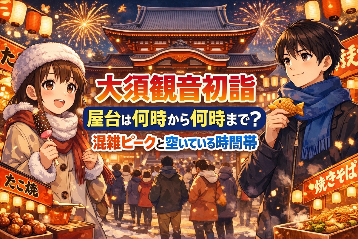 この記事では、大須観音初詣2026の屋台の出店時間をはじめ、混雑ピークの時間帯や比較的空いている狙い目の時間まで詳しくまとめます。