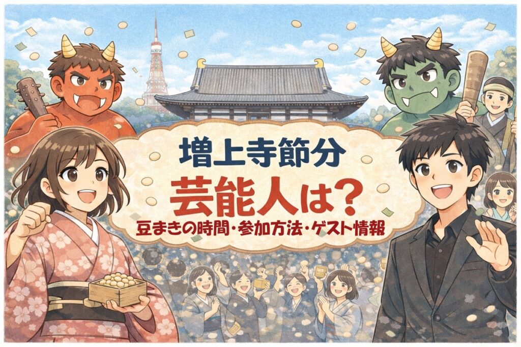 増上寺の節分会は、毎年多くの参拝者でにぎわう東京屈指の人気行事で、特に芸能人による豆まきは大きな注目を集めます。 2026年は誰がゲストとして登場するのか、豆まきは何時から行われるのか、一般参加はできるのかなど、気になる点も多いですよね。 こ... -