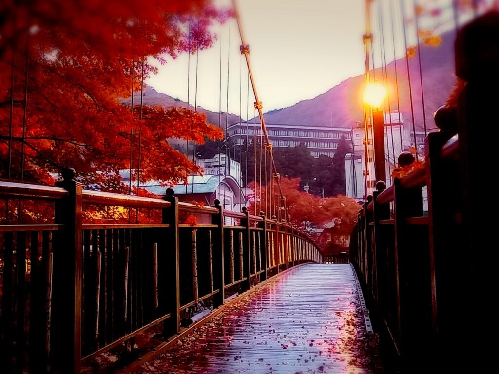 標高や気候の影響で、エリアごとに見頃が異なり、山間部から徐々に温泉街周辺へ色づきが移ってきます。