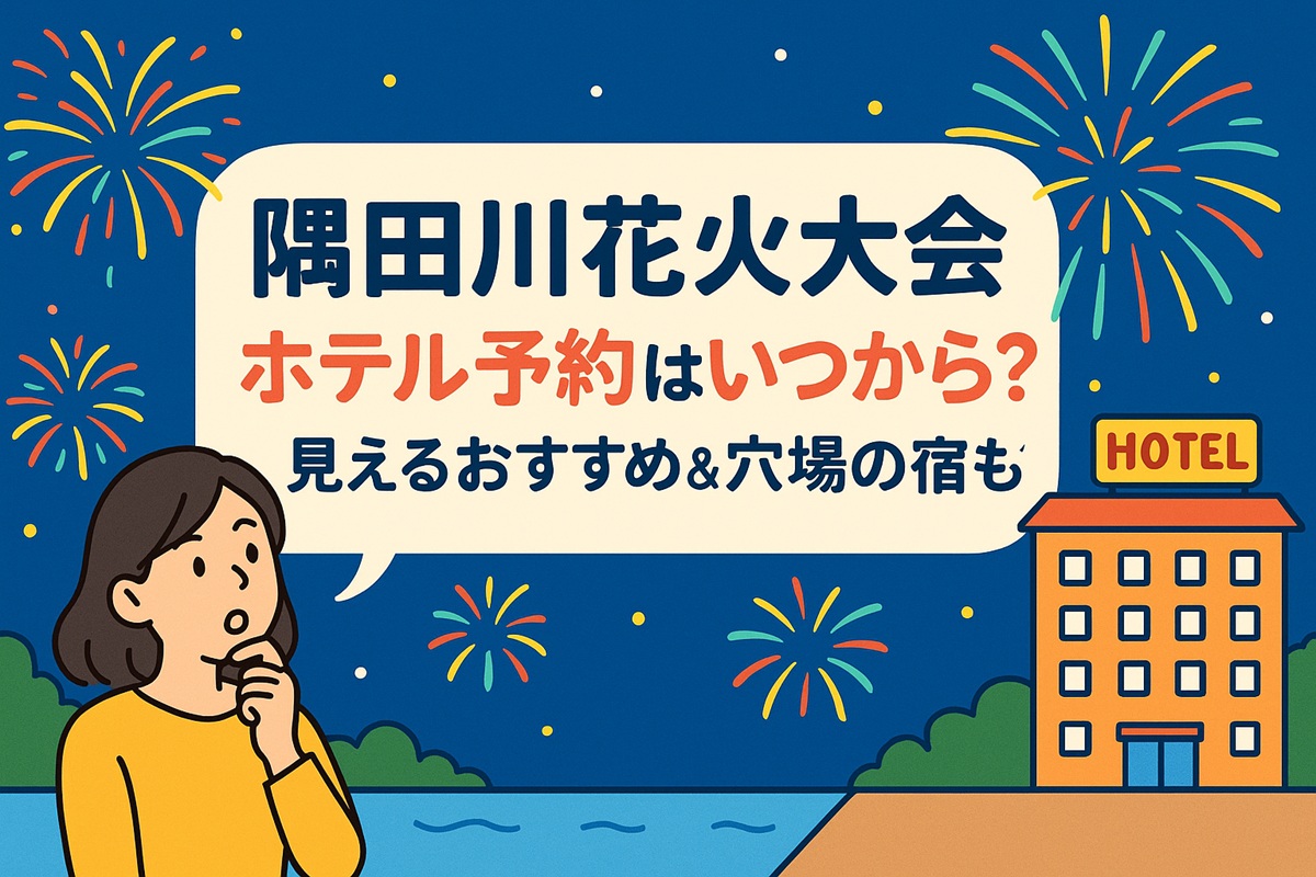 この記事では、隅田川花火大会2025に向けたホテル予約の開始時期や注意点をはじめ、花火が部屋から見えるおすすめホテルや、混雑を避けられる穴場の宿をご紹介します。