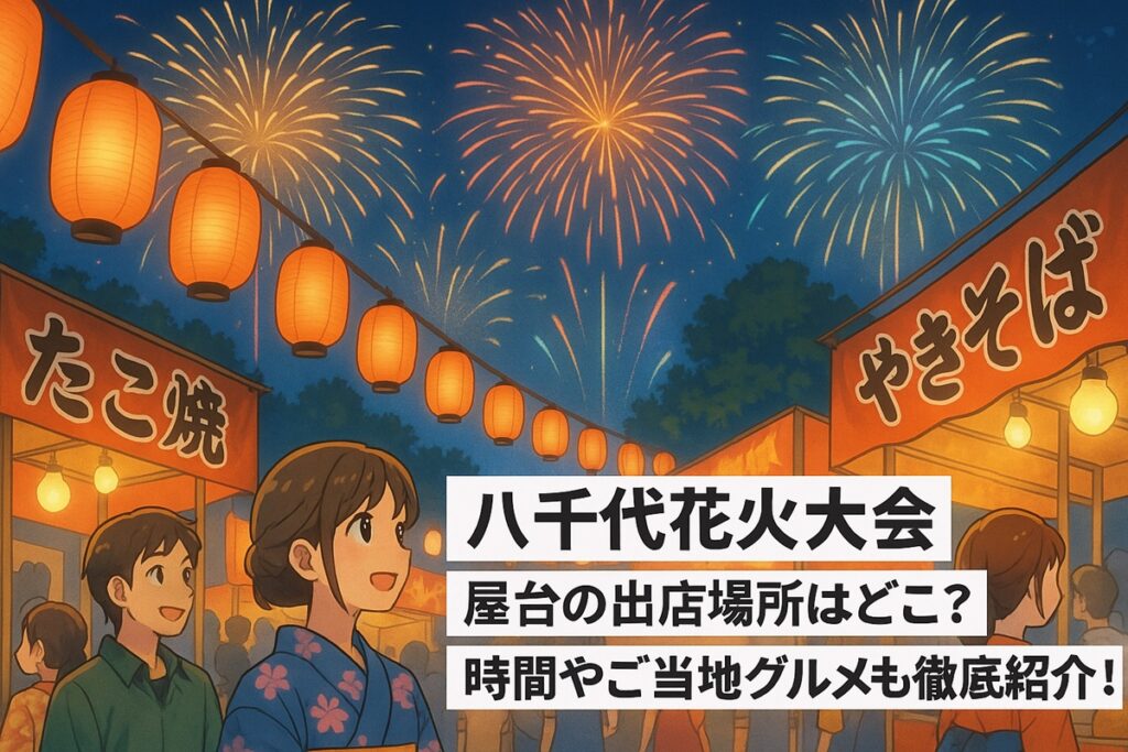 夏の夜空を彩る「八千代花火大会」は、千葉県内でも人気の高い花火イベントのひとつです。 迫力ある大輪の花火とともに、多彩な屋台グルメを楽しめるのも大きな魅力。 会場周辺には焼きそばやたこ焼きといった定番はもちろん、地元ならではのご当地グルメ... -