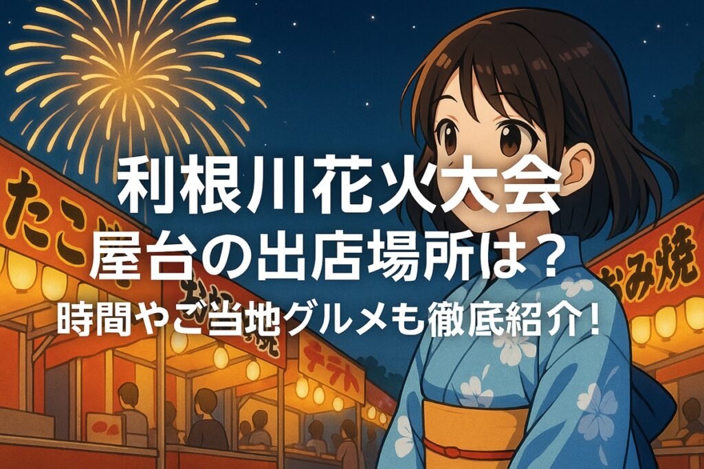夏の夜空を彩る「利根川花火大会2025」は、毎年多くの人でにぎわう人気イベント。花火だけでなく、会場にずらりと並ぶ屋台も見逃せません!出店場所はどこ?屋台の営業時間は?どんなご当地グルメが楽しめるの?この記事では、屋台の最新情報から混雑を避... -