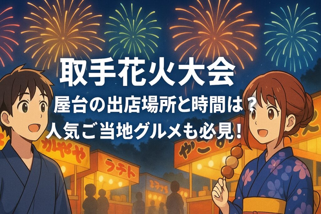 取手花火大会2025では、華やかな花火とともに楽しめる屋台グルメも大きな魅力。 会場周辺にはたくさんの屋台が並び、地元ならではのご当地グルメや人気の定番メニューが勢ぞろいします。 この記事では、屋台の出店場所や営業時間、混雑しにくい狙い目の時... -