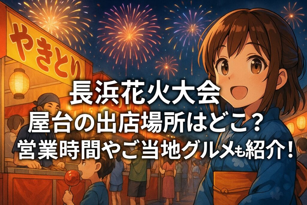 長浜花火大会は毎年多くの人々が訪れ、琵琶湖の夜空を彩る大輪の花火とともに、会場を盛り上げる屋台グルメも大きな楽しみのひとつです。 2025年も例年通り、多彩な屋台が立ち並び、観覧者の食欲をそそります。 この記事では「屋台の出店場所はどこ?」「...