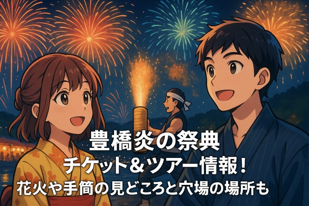 愛知県豊橋市で毎年開催される「豊橋炎の祭典」は、迫力満点の手筒花火と夜空を彩る大輪の花火が楽しめる人気イベントです。 2025年も全国から多くの観客が訪れることが予想され、チケットやツアー情報のチェックは早めが安心。会場周辺は混雑するため、有... -
